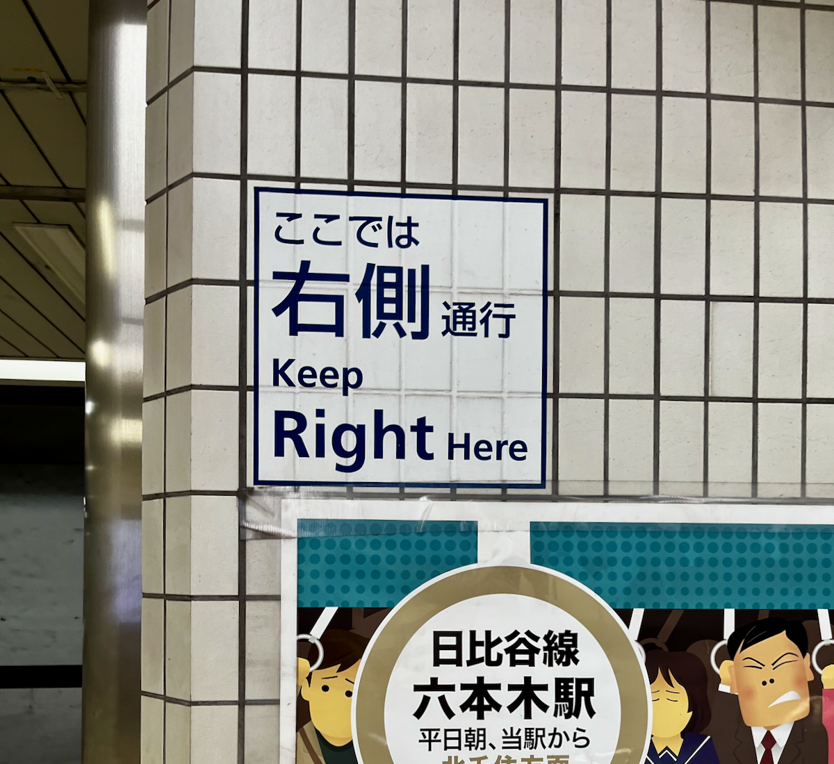 Auch beim Umsteigen und auf den Wegen ist alles auf Struktur und effektives Durschleusen vieler Menschen ausgelegt: jede Treppe und jeder Gang gibt an, ob man sich hier links oder rechts halten soll. An einem Sonntagnachmittag nicht notwenig, aber in der Rush Hour essentiell, um Chaos zu vermeiden.