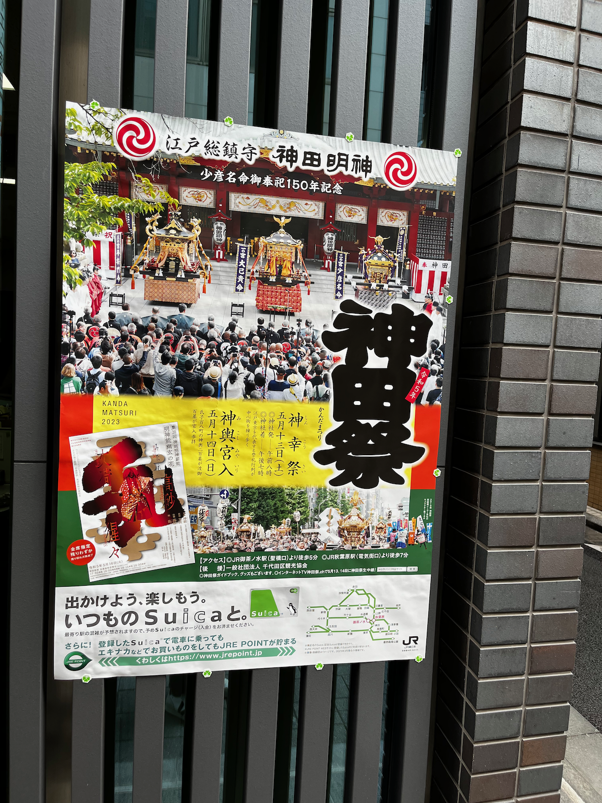 Zunächst vermuteten wir einen potenziellen Zusammenhang mit der Kommunalwahl, letztlich konnte Google Translate dann aber doch irgendwann für Aufklärung sorgen: Es ging um das Kanda Matsuri 〈神田祭〉 (Kanda Fest) — und zwar im 150. Jahr. Das Fest geht bis ins 17. Jahrhundert zurück und gehört neben dem Fukagawa Matsuri und Sannō Matsuri zu den drei größten traditionellen Festen in Tokio.
